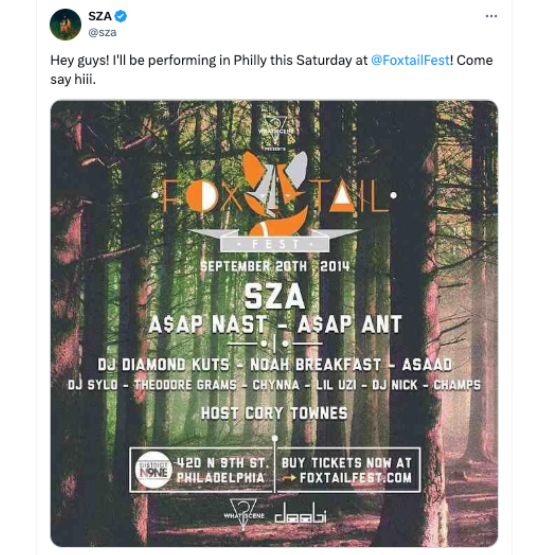 - Influencer and Artist collaboration posts and tagged posts with sponsors by performing artists, DJs, vendors, media, and promotional partners.