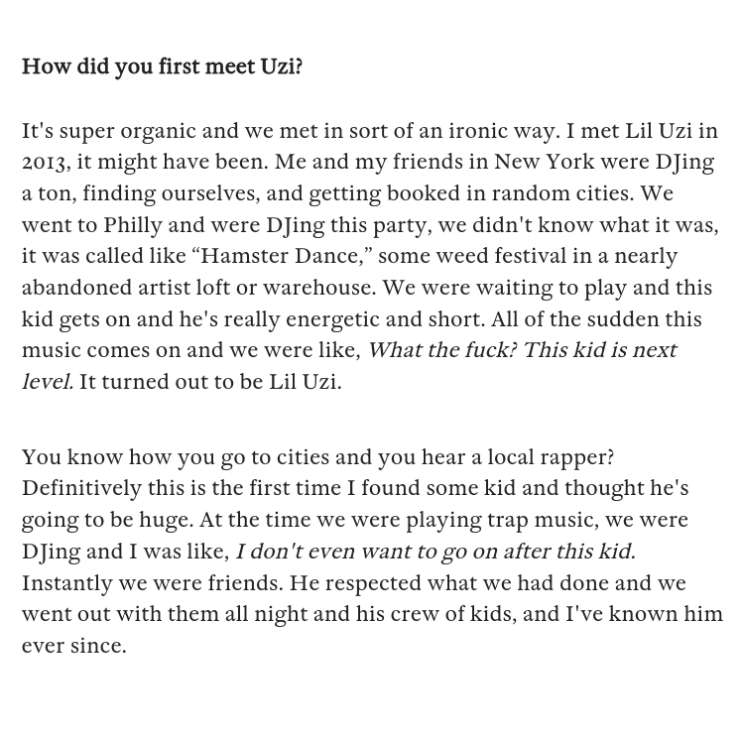 Virgil Abloh credits Hamsterdam Circus as his first time hearing of and meeting Lil Uzi Vert.
